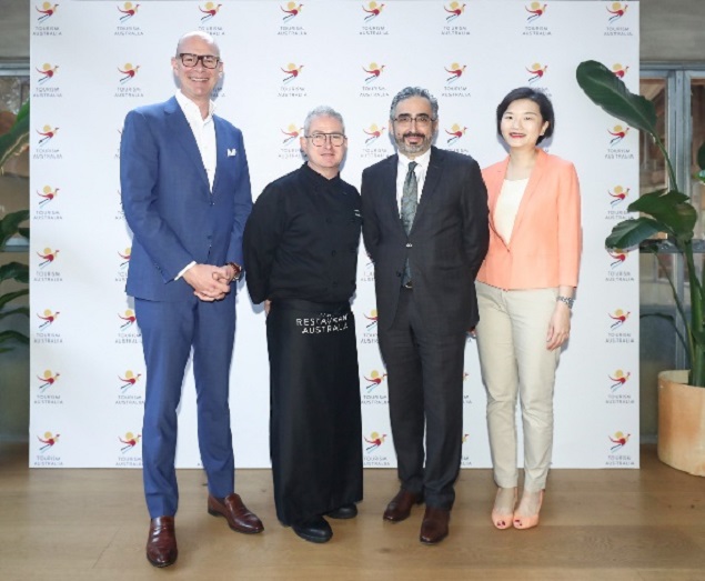左起:澳大利亚旅游局亚洲市场及国际航司业务执行总经理何安哲(Andrew Hogg),“澳大利亚之友”(Friends of Australia)贵格(Craig Willis),澳大利亚驻上海总领事戴德明(Dominic Trindade)及澳大利亚旅游局中国区总经理胡敬雯( Mandy Wu)合影
