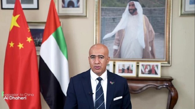 阿联酋驻华大使阿里·扎希里阁下受邀致欢迎辞:“我们欢迎中国人民来阿联酋领略首都阿布扎比的美丽风光。阿联酋是一带一路沿线的重要国家。我们非常高兴地看到,中国在2020年迪拜世博会中发挥重要作用。两国关系的深入发展将会吸引更多的中国游客来到阿联酋。”