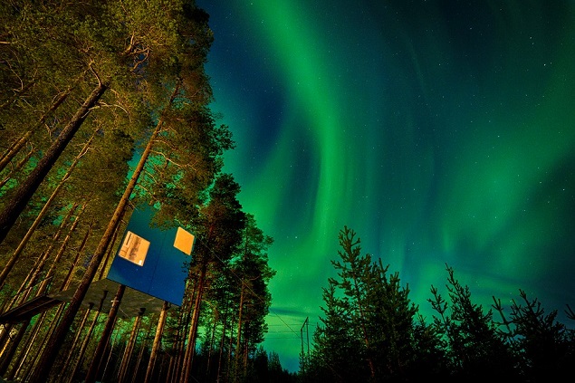 此次极光直播的地点选在了瑞典北部知名的树屋酒店,酒店位于哈拉斯村(Harads)旁的一片茂密的松树林中。这里直线距离北极圈150公里,酒店共有七间造型各异的树屋,每间都是一栋独立的建筑,虽深藏林中,却都配备了现代化设施。树屋酒店自2010年开业以来,成为美国国家地理杂志、BBC等国际媒体报道中的常客,吸引了来自全球各地包括远道而来的中国客人。哈拉斯村紧靠Lule河谷,距离瑞典北部最大的机场吕勒奥只有约一小时的车程。这样独特的地理位置使得它拥有了原始而纯净的自然环境,成为一处不错的极光观赏点。