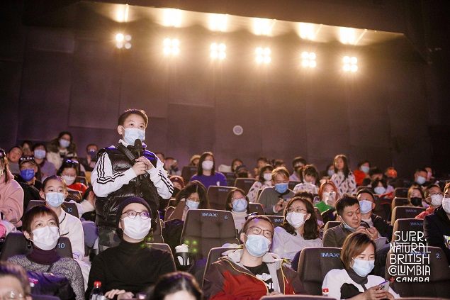 观影现场气氛热烈,观众纷纷被萌态十足的白灵熊圈粉。BC省旅游局为观众设置了有奖互动、白灵熊知识问答等环节,为在场的幸运观众送上白灵熊的玩偶。现场还抽取了由加拿大航空赞助的机票大奖。