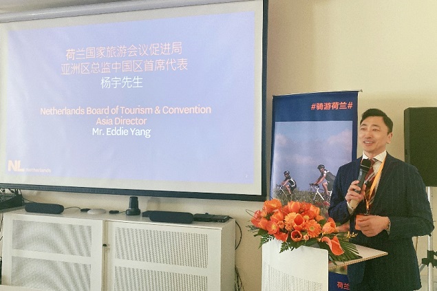 荷兰国家旅游会议促进局亚洲区总监、中国区首席代表杨宇先生进行了开场欢迎并向大家介绍了“骑行+”荷兰旅游主题介绍,2023年荷旅局将继续推广以骑行为主的可持续发展旅行系列线路。荷兰是世界上最适合骑行的国家,人均自行车拥有量为1.3辆,设施完善的自行车道长达4万公里,地势平坦。荷兰人也是非常喜欢骑行,从皇室到平民,各个城市各个地区都有绿色环保的骑行风景。春天的“骑行+赏花”,夏季的“骑行+户外活动”,秋天的“骑行+博物馆”、冬季的“骑行+美食”系列旅行产品都将是一次从“去哪玩”到“怎么玩”的线路升级。相信骑行也将是游客再去到荷兰时非常喜欢的一种旅行方式。
