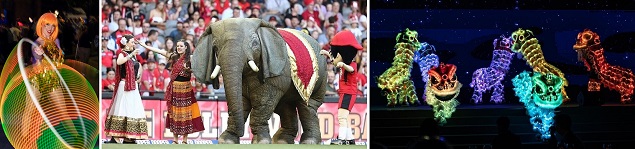 不少表演者与观众更将热情互动,其中,前澳洲艺术体操冠军选手会以超卓的技艺送上LED 呼啦圈表演,炫幻光影在晚上将分外令人瞩目;曾在澳洲巡回演出,大受小朋友欢迎的大象艺术装置更首度在港亮相,以非洲森林大象为蓝本的艺术装置栩栩如生,生动逼真;糅合传统舞狮与LED 灯效的醒狮团,为嘉年华增添热闹气氛!