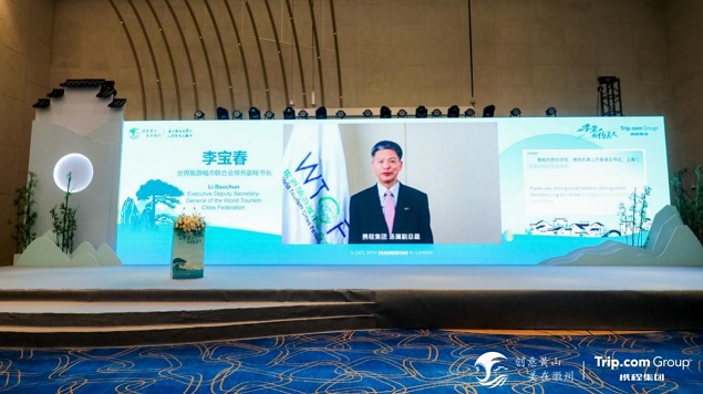 世界旅游城市联合会常务副秘书长李宝春,通过视频发表了致辞,“未来,联合会将助力黄山与其它国际旅游城市和机构之间的交流与合作,共享联合会的国际舞台和旅游资源推广渠道,推动黄山市向生态型国际化世界级休闲度假旅游目的地城市迈进。”