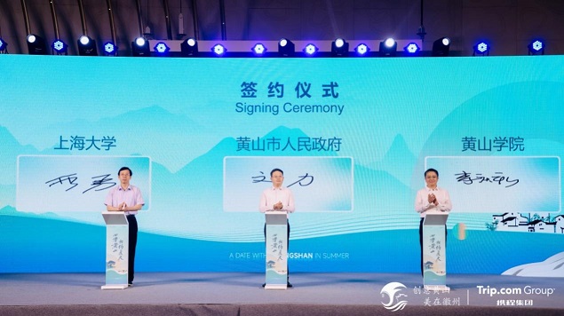 值得一提的是,在发布会的签约揭牌环节,携程文旅产业联盟企业代表与黄山市文旅企业、黄山市文化和旅游局签署了一系列战略合作协议。作为发布会的重要议程,在各方共同见证下,上海大学黄山国际传播研究院正式揭牌成立。通过政企学三方的通力合作,将黄山独特资源优势传递出去,吸引更多人流物流资金流信息流汇聚黄山、共建黄山。