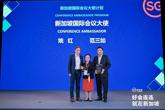 为了感谢长期以来大中华区业者对新中会奖交流的支持,新加坡旅游局将首次在中国推出“新加坡国际会议大使计划(Conference Ambassador Programme,CAP)”。会上,新加坡旅游局正式宣布中国商协会大会副主席姚红女士和中国保险精英圆桌大会东盟秘书长范三如先生成为首任大使, 两位将共同促进中国行业协会与新加坡会奖行业的合作。