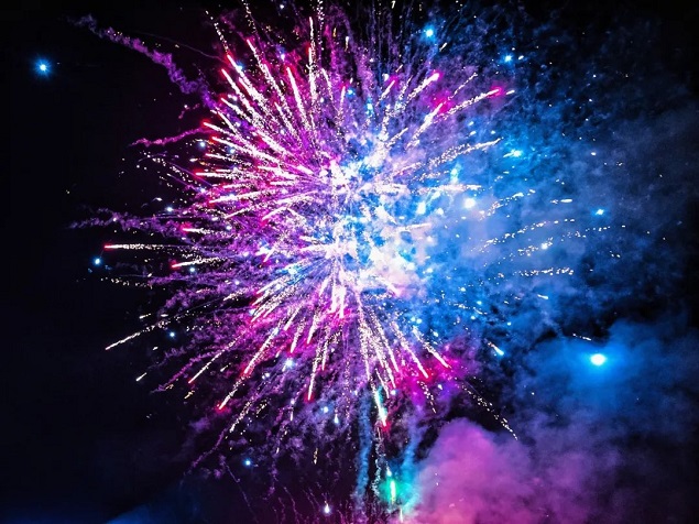 与会来宾在新加坡旅游局举办的欢迎晚宴上共赏烟花秀/国家旅业网实拍