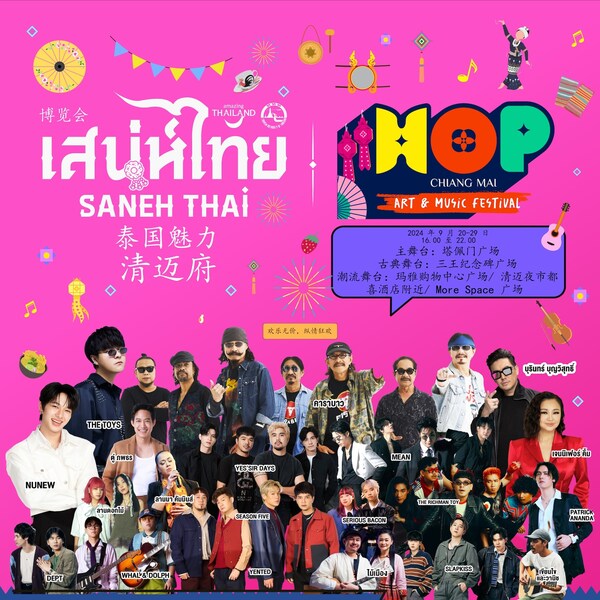 北部:9月20日至29日,16:00-22:00,清迈。主题:"HOP清迈艺术与音乐节"。设有三个舞台:塔佩门主舞台、三王纪念碑传统舞台、MAYA购物中心等地的潮流舞台。清迈这座历史文化名城将成为艺术爱好者的天堂。除了传统的寺庙和古城外,游客还可以在各种艺术展览和创意市集上找到独特的纪念品。