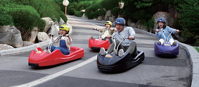 在长1.8公里的滑道上享受速度与激情吧。360度回旋区段和隧道、陡坡区段等更是其乐无穷,眼前展开的大海景色也让人惊叹不已。