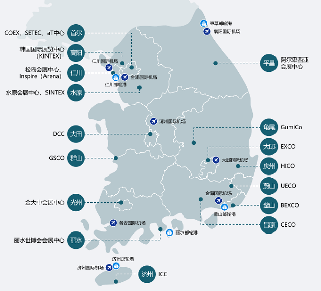 19个地区的MICE专业组织为企业的会议活动、奖励旅游提供坚实的保障。8个国际机场实现与全国17个会展中心的最佳动线,这为会议活动、奖励旅游的展开提供了极大的便利性。