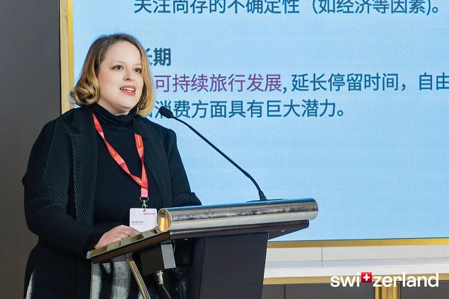 瑞士国家旅游局大中华区主任常典娜女士首先介绍了市场表现和冬季潜力:2024年1-8月大中华区市场在瑞士停留已达768,051间夜次,与上年同比增长50.6%,稳居亚太地区首位,回到瑞士海外客源市场第六位。冬季一直是瑞士在中国主力推广的主题。我们观察到,在2022年北京冬奥会的余热下,越来越多的中国人投身于冰雪运动。去年冬季,中国游客前往冰雪目的地旅游也成为热门潮流。这些消息对瑞士来说都是巨大的利好。23/24雪季,大中华区游客赴瑞间夜次已恢复至疫情前的76%。常女士还重申,瑞士国家旅游局的中长期愿景为:影响和引导游客在瑞士的旅行和消费行为,重点推广自由行,新目的地,延长停留时间,根据兴趣爱好规划行程的瑞“式”可持续旅行方式。