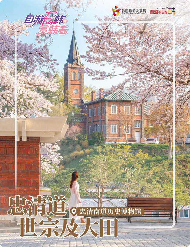 • 介绍:樱花加持下的忠清南道历史博物馆因其展现出的欧式浪漫氛围,在社交媒体上引发了广泛的关注。入口处的台阶、中洞圣堂正对面、通向博物馆的上坡路是网友们最推荐的拍照点。馆内的樱花园可近距离观赏花景。接住飘落花瓣时请许下的愿望,说不定能实现。