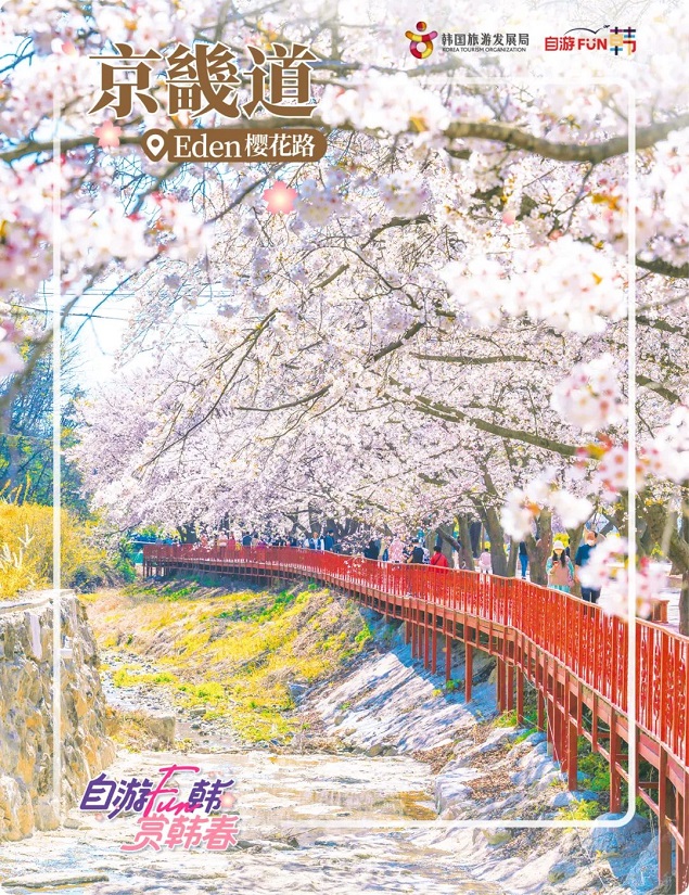 • 介绍:Eden樱花路号称是韩国樱花开放最晚的地方,每年4月中旬通常举办樱花庆,期间品尝平价的街头小吃,观看热情的艺术表演,切实感受春天的美好。