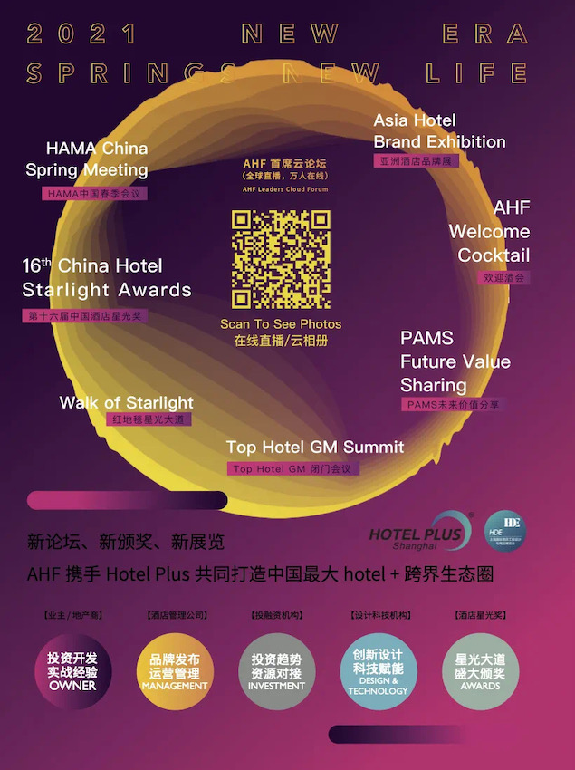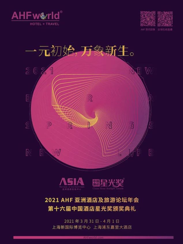 3月31日-4月1日,2021 AHF亚洲酒店及旅游论坛年会暨第十六届中国酒店星光奖颁奖典礼,在上海新国际博览中心、上海浦东嘉里大酒店盛大举行。