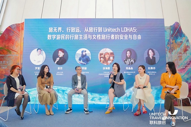 在《旅无界,行致远,从旅行到UNITECH LOHAS;数字游民的行旅生活与女性旅行者的安全与自由》圆桌会议上,乐领生活董事长罗雷、hofo公关联合创始人景然、凡朴生活(凡朴文化发展有限公司)总经理涂海霞、润勃生态旅行论坛理事方莉丽、美好旅途咨询公司创始人周晶晶和旅游及Rosewood瑰丽集团酒店管理区域市场销售总监赵晨亦围绕UNITECH LOHAS进行了颇多有趣的探讨。