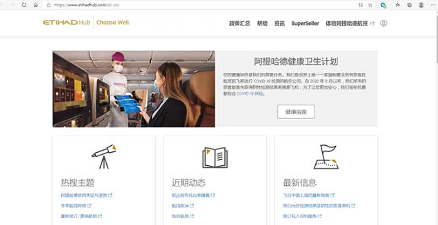 阿提哈德航空“代理人中文自助查询服务”网站https://www.etihadhub.com/zh-cn正式上线了。今后,有关机票退改政策、疫情期间乘机要求、机票预订细则(如:如何更改姓名?长转机应该如何预订?等等)等所有规定和政策,都可以在此网站上找到答案。
