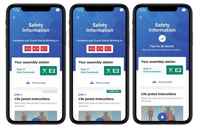 此外,疫情期间,皇家加勒比开发了一款名为Muster2.0的程序以取代传统游轮安全演习。借助Muster2.0,游客可以从手机、平板电脑上的软件或客房电视获得安全演习的关键信息,包括查看紧急情况下会发生什么、应该去哪里,以及如何正确使用救生衣等。游客不再需要集中参加安全演习,而是根据自己的时间分别前往指定的集合点完成演习确认。Muster2.0完全符合相关国际安全标准,这一技术革新重塑了游轮行业的安全演习模式。