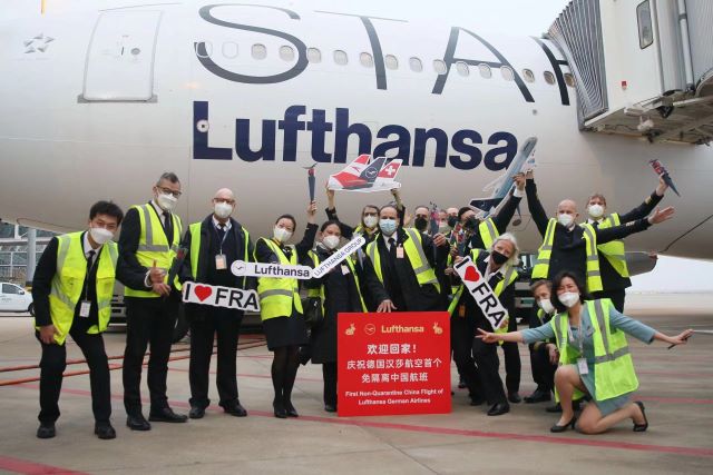 德国汉莎航空公司首个免隔离航班顺利抵达上海