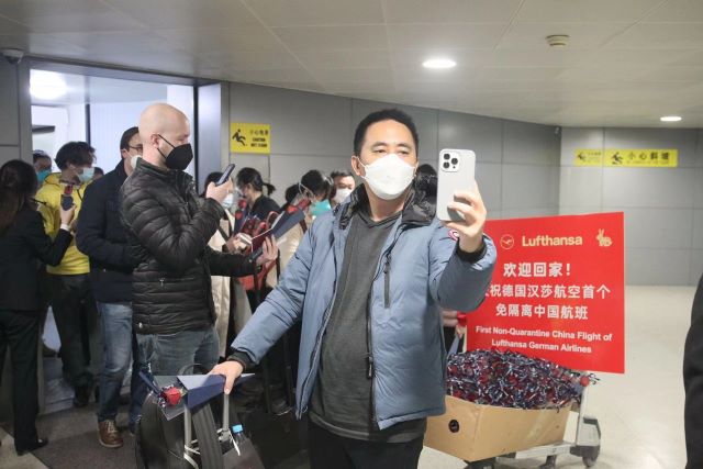 为了欢迎乘客的顺利到达,汉莎航空还为此次航班的所有乘客精心准备了一份小礼物,欢迎他们回家。汉莎航空集团大中华区总经理陈倩女士表示:“在经历三年非常时期后,乘客以及民航人都将迎来春天。”2022年,陈女士带领团队,持续维护中欧航线的稳定和运营,为中欧之间的经济、文化往来架起一座桥梁。“相信随着国门的打开,我们会逐步增加中国航班数,为来往中欧的乘客提供更多的便利。”据悉,汉莎航空集团目前每周提供17班前往中国的航班,其中4班飞往上海,1班飞往北京,12班飞往香港。