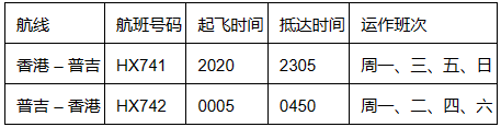 香港航空来往香港及普吉的航班时间表*如下(所有时间均为当地时间):
