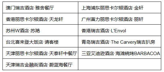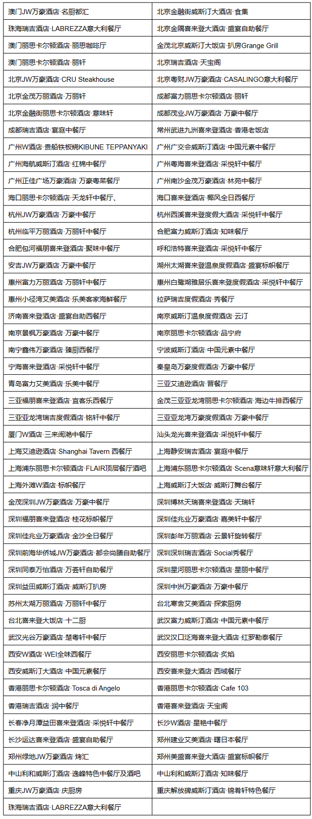 万豪旅享家大中华区107家餐厅荣膺2023携程美食林全球餐厅精选榜