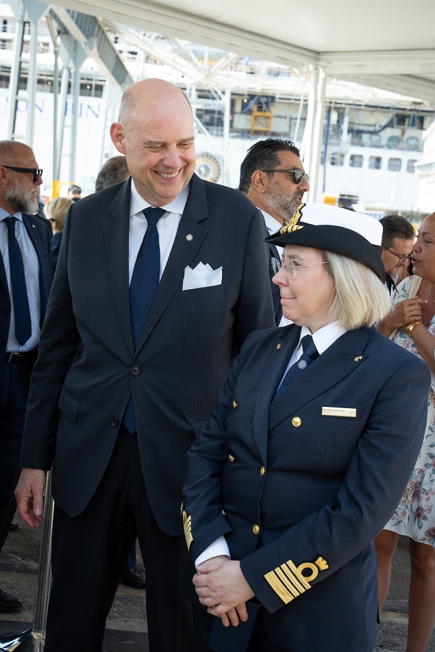 Explora Journeys首席执行官Michael Ungerer先生及船长Serena Melani女士(图源:Ivan Sarfatti)