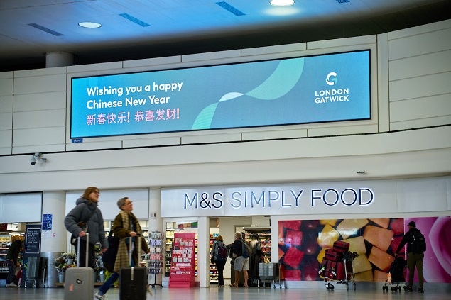 在中国新年期间,London Gatwick准备了一系列欢迎中国游客的新春礼遇,包括中文新春祝福的标语,印有祝福的饼干及红包等专属礼遇。