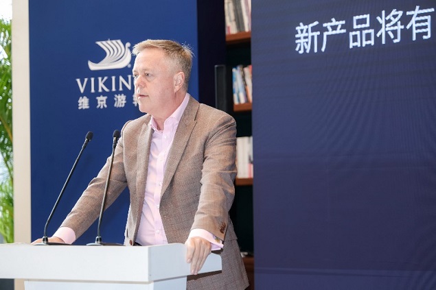 维京游轮中国区董事总经理唐博文(Brendan Tansey)在发布会现场致词