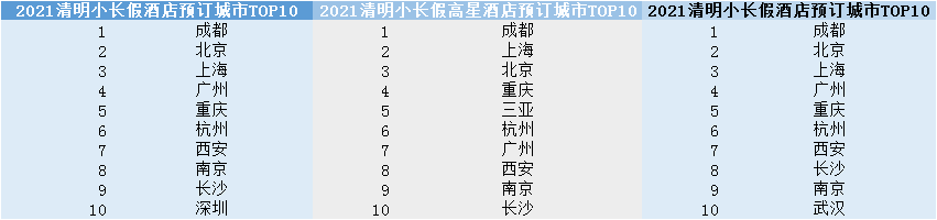 此外,在今年清明小长假中,多个城市的酒店预订量增幅都创近年来新高。