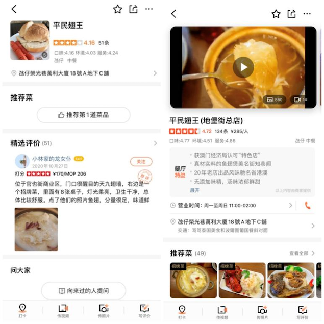 以澳门本地特色小店“平民翅王”为例,得益于澳门特区政府的补贴计划,“平民翅王”在大众点评App升级了线上门店,发放百元代金券等优惠促销活动等形式,强化了餐厅特色,吸引了大量游客到店打卡体验。大众点评数据显示,仅两个月时间,“平民翅王”就在线售出225份订单。对此,餐厅相关负责人表示很意外,认为“政府对中小商户的支持,使得餐厅名气和生意都有了新起色,对澳门旅游的恢复也起到正向引导。”