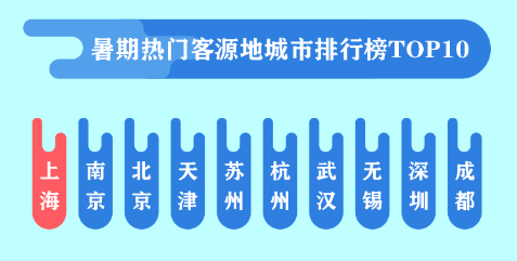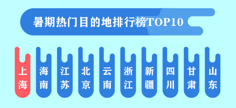 通过途牛预订7-8月暑期出游的数据显示,最受用户关注的热门目的地排行榜TOP10分别为上海、海南、江苏、北京、云南、浙江、新疆、四川、甘肃、山东。占据榜首的上海7月第一周环比上周搜索量上涨255%。和端午小长假更多周边游目的地受宠相比,暑期出游“云南”“新疆”“甘肃”等国内长线游目的地强势上榜。除TOP10目的地以外,内蒙古、黑吉辽等地,也迎来了众多的避暑用户。上海、南京、北京、天津、苏州、杭州、武汉、无锡、深圳、成都等10个城市上榜“暑期出游热门客源地城市排行榜TOP10”,更多集中在北上广及江浙地区等一线城市。