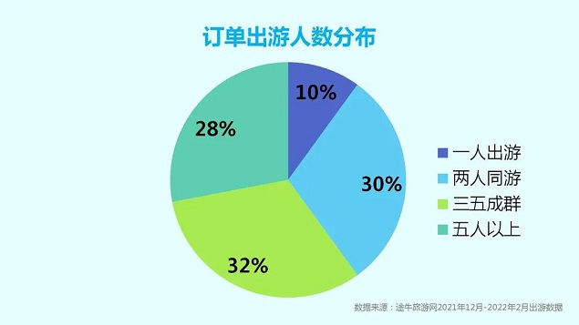在畅玩冰雪的途中,有九成用户都选择了结伴出游。两人出游订单中,情侣、夫妻、好友、闺蜜是消费主力;三人及以上出游订单中,亲子同游占比较往年增幅较大, “家庭化”“亲子化”成为当下冰雪旅游市场的显著趋势。