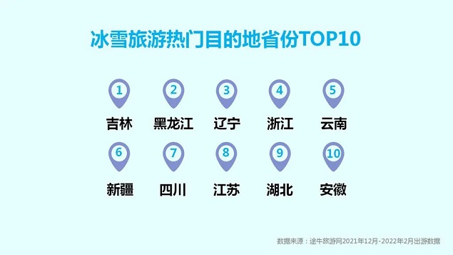 从热门冰雪旅游目的地省份榜单来看,“东三省”依然占据着国内最广阔的市场,其次,浙江、云南等省份的冰雪旅游市场也空前火爆。