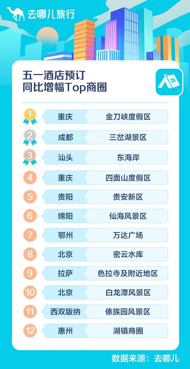 相比去年五一,本地游、周边游是今年五一假期的大趋势。4月22日,随着广州摘“星”,去哪儿平台数据显示,截至4月22日22点,广州酒店搜索量环比上周增长达3倍。疫情较为平稳的川渝地区,政府用发放消费券的形式,鼓励市民本地出游。重庆市文化旅游公共服务平台于4月22日发放惠民补贴,用户可在去哪儿旅行App等多平台免费领取。
