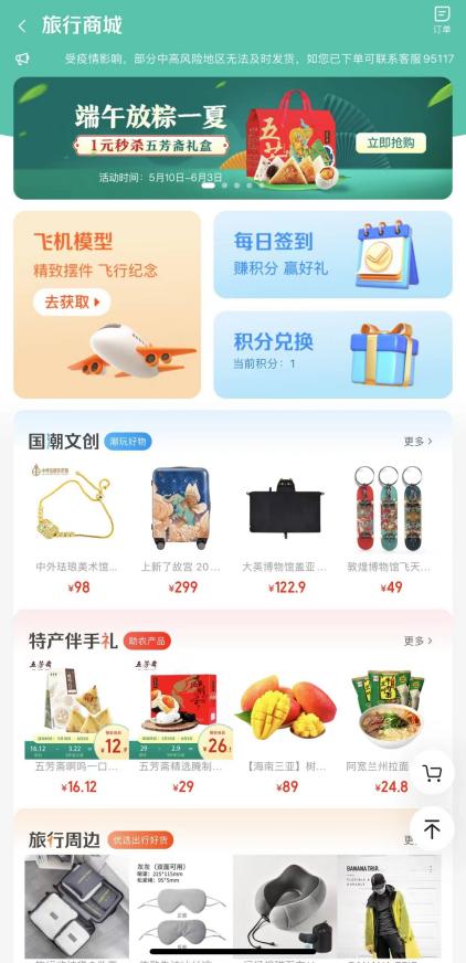 为满足沉浸式出游需求,去哪儿旅行商城设置了不同特色周边板块,从衣食住行乐多个方面延伸用户的出游兴趣。