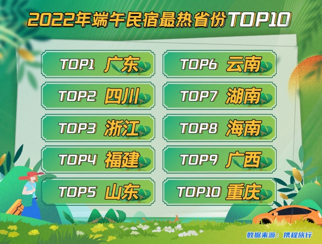 从民宿预订的热门省份来看,广东省的民宿间夜量占比,较去年同期提升近14%。民宿预订前5大热门省份中,有3个省份集中在东南沿海地区。