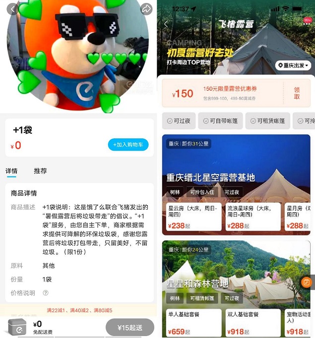 露营订单量增长200%,饿了么联合飞猪发起“+1袋”露营垃圾处理公益项目