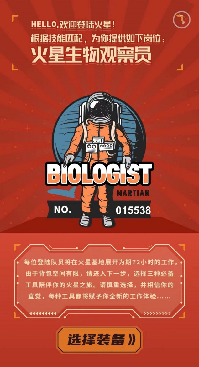 今年“轻年计划”除招募50位青年前往火星1号基地外,还将为青年提供基地内的实习岗位。穷游er可通过穷游APP查找 “轻年计划”招募活动,选择自己擅长的生活技能点,查看适合自己的“火星岗位”,并根据岗位选择三种陪伴自己开启火星之旅的工具,而每种工具都将赋予用户全新的工作体验。火星1号基地提供的工作机会也正是招募活动中的这些岗位,包括协助指挥中心进行指挥协同程序的指令长;协助生物舱作物种植收获、设备操作、数据监控汇报等工作的生物观察员;协助每日常规巡查,餐食设计与营养配比的生活师等。