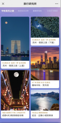 马蜂窝旅行玩乐大数据显示,“赏月”、“古风游园”、“户外活动”是今年中秋小长假的三大关键词。游客的出行决策周期大幅缩短,近40%的游客观望至出行前一天才确定出行目的地。其中,以本地游客为主的一日游订单占比达到58.6%。