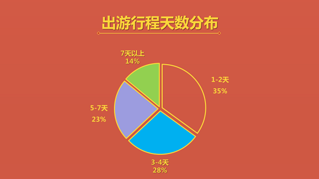 用户出游天数方面,更多用户选择了1-2天的出游行程,占比为35%;其次为3-4天的行程,出游人次占比为28%。