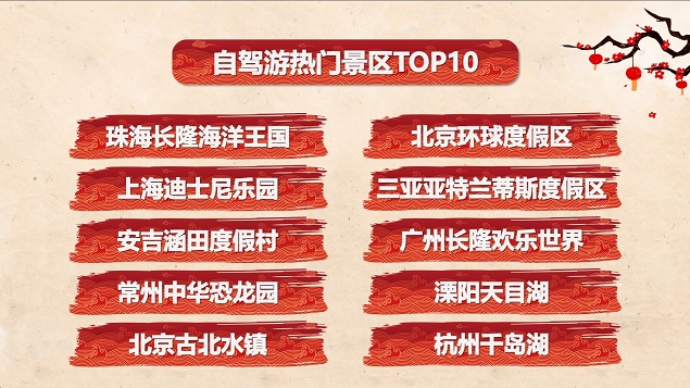 自驾游方面,更多用户选择在家门口的主题乐园、山水园林、温泉康养等景区度过新春。途牛旅游网数据显示,珠海长隆海洋王国、北京环球度假区、上海迪士尼乐园、三亚亚特兰蒂斯度假区、安吉涵田度假村、广州长隆欢乐世界、常州中华恐龙园、溧阳天目湖、北京古北水镇、杭州千岛湖等景区受到热捧,预计随着春节假期的临近,还将迎来一波预订热潮。