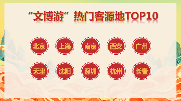 途牛旅游网截至目前数据显示,今年以来,北京、上海、南京、西安、广州、天津、沈阳、深圳、杭州、长春等地用户更热衷于“文博游”。以北京为例,作为中国历史文化名城和古都之一,北京也被誉为“博物馆之城”,是“文博游”最热门的客源地和目的地之一。今年五一期间,中国国家博物馆、故宫博物院等热门博物馆的门票早在节前就被预约一空。与此同时,北京也以“国际博物馆日”为契机,推出首届北京博物馆活动月。活动月期间,全市博物馆将重点推介近300场展览,1000+件线上文物,每日10000+张免费免预约惠民门票。