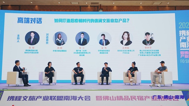 活动现场,时代文旅董事长、首席战略顾问熊晓杰、欢叻文旅创始人、CEO陈宏进、中国乡村振兴综合运营品牌“鹿柴山集”创始人胡应兵、海昌海洋公园文旅公司商务中心总经理吴翔、洲际酒店集团大中华区资深发展经理陈自强,五位业界重磅嘉宾就文旅新场景、微度假、乡村振兴、多产业融合、度假酒店发展等热门文旅话题,带来行业前沿动态分享。同时,打造高端对话局,携程集团副总裁、政府合作部总经理张旭与五位行业大咖共同探讨后疫情时代休闲文旅业态产品的打造趋势及方法。以当前国内旅游前沿话题、产业新趋势、投资新导向等方面,对如何实时性推动“微度假·到南海”品牌持续结出丰硕果实建言献策。