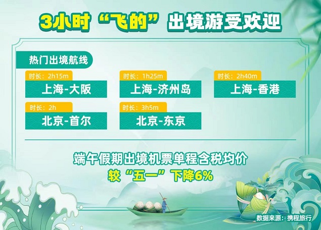携程发布端午假期出游趋势:3小时“飞的”出境游受欢迎