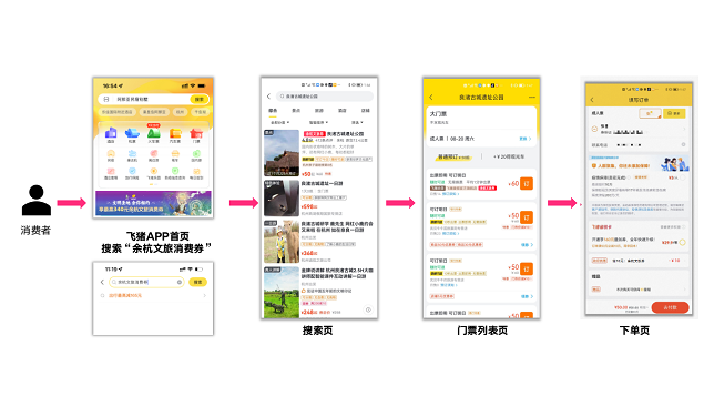 本次消费券的发放时间从6月15日12:00持续到8月31日,先到先得,涵盖了端午、暑期等旅游旺季。消费者在此期间只需要在飞猪旅行APP上搜索“余杭文旅消费券”,无需额外领券,直接下单购买带有“余杭文旅券”标识的商品,平台将自动生成相应的消费券进行抵扣,其中消费券额度包括满30元减10元、满100元减30元、满300元减100元、满600元减200元这四种档位。