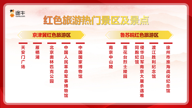 为了给用户带来更高品质的红色旅游产品和出游体验,近年来,途牛通过充分发挥互联网平台的数字化、整合营销以及产品创新和服务品质上的核心能力和优势,不断开拓红色旅游市场,助力红色旅游快速发展,将科技力量、乡村振兴、扶贫助农等元素不断融入红色旅游产品,推出了一系列更具红色主题辨识度和沉浸式体验的红色旅游产品。
