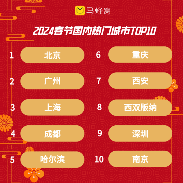 马蜂窝2024春节旅游数据报告:先团圆再旅行,年轻人热衷合家错峰出游