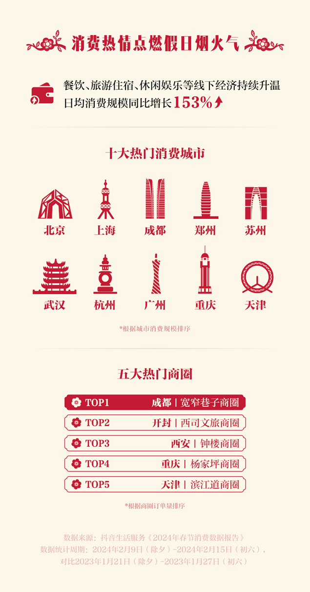 (抖音生活服务数据显示,2024年春节假期日均消费规模同比增长153%)