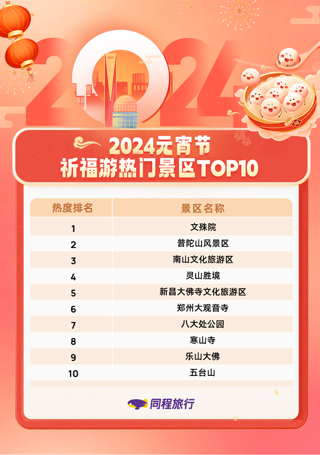针对元宵节期间的祈福游等出游需求,同程旅行平台上线了“新春祈福”春节及元宵节专题线路。