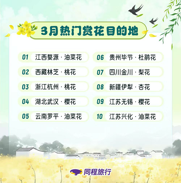同程旅行发布2024踏青季旅游出行趋势,“长短结合”赏花游热度上涨3倍