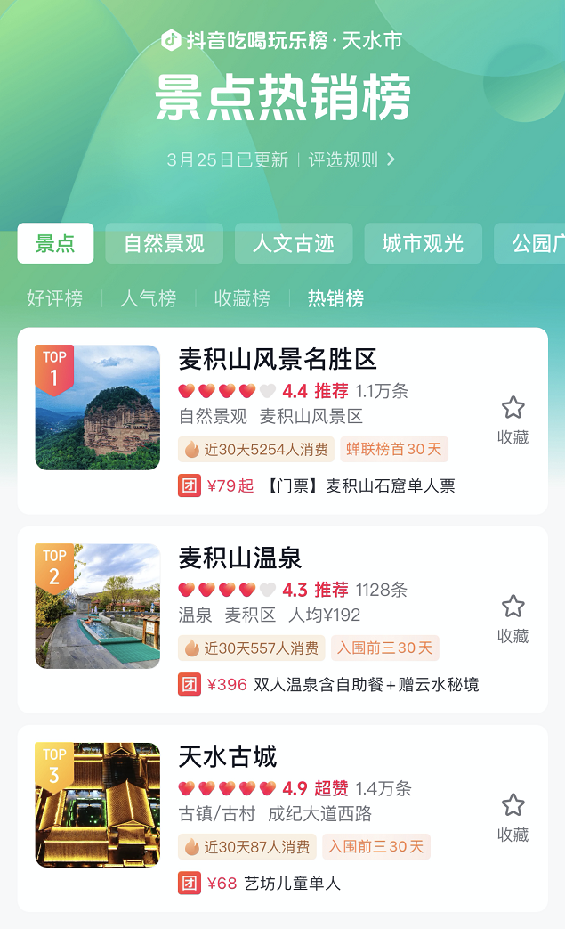 天水30天抖音麻辣烫订单增259%,清明小长假景区游玩订单增6.7倍